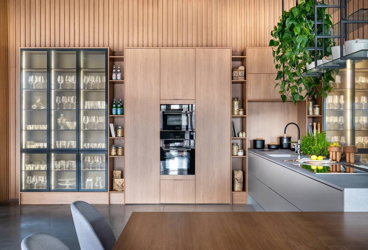 É comum distribuir os elementos da cozinha de maneira tradicional, como de costume. Contudo, se a ideia é inovar, é possível repensar essa disposição para criar um layout não linear e transformador. A incorporação de ilhas multifuncionais, bancadas não convencionais e espaços de armazenamento criativos otimiza o fluxo de trabalho e maximiza o aproveitamento do espaço.