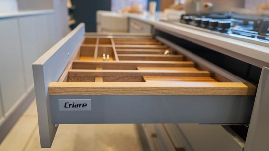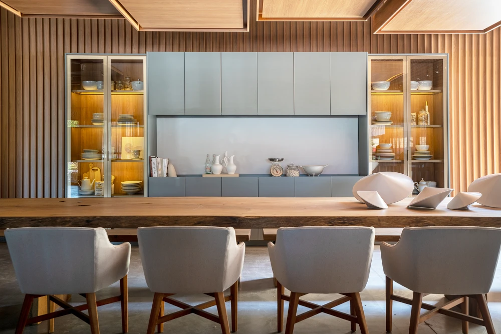 Na cozinha, por exemplo, os móveis planejados contribuem para um mais inteligente armazenamento de utensílios como talheres, pratos, copos, panelas e eletrodomésticos, além de alimentos, melhorando a capacidade e o acesso a eles.