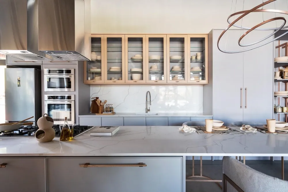 Aproveitar o espaço vertical é uma solução de design inteligente para cozinhas menores ou para aquelas que precisam armazenar uma grande quantidade de itens. Instalar prateleiras abertas ou sistemas de trilhos, por exemplo, pode liberar espaço na bancada e garantir que os utensílios estejam sempre ao alcance.