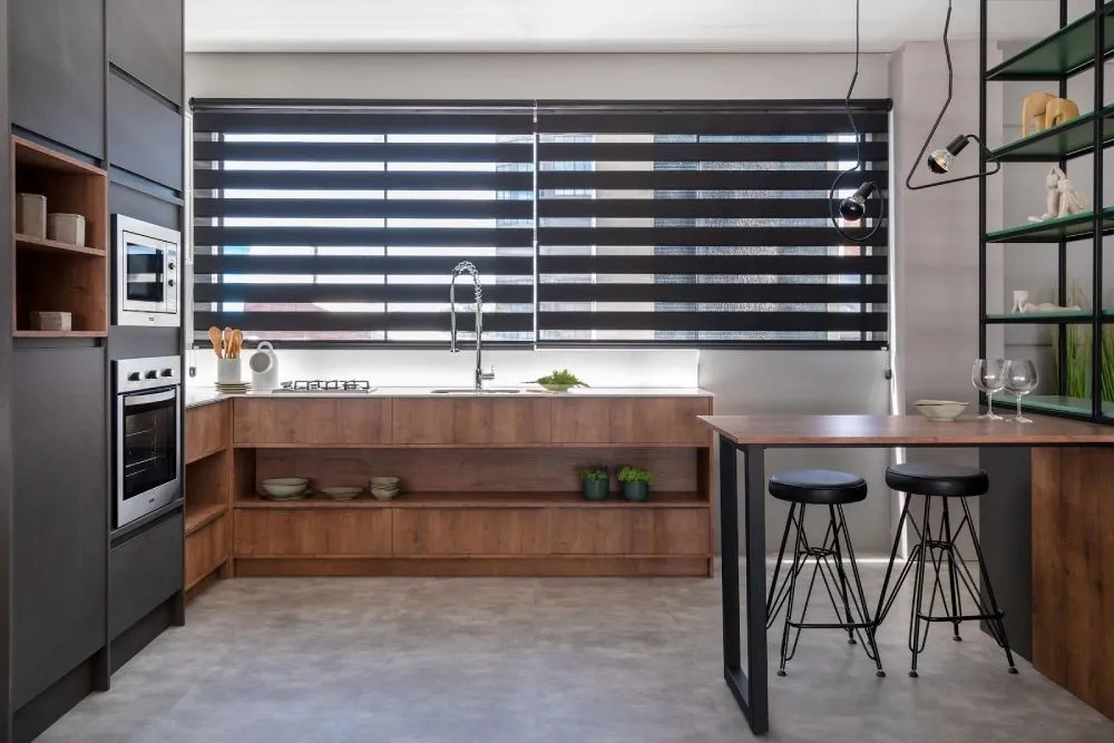 A tendência de integrar eletrodomésticos, como cooktops e fornos, às bancadas e ilhas otimiza o espaço e cria um visual clean. Esta abordagem é ideal para cozinhas compactas, onde cada centímetro conta. Além disso, facilita a criação de áreas de trabalho eficientes e ergonômicas.