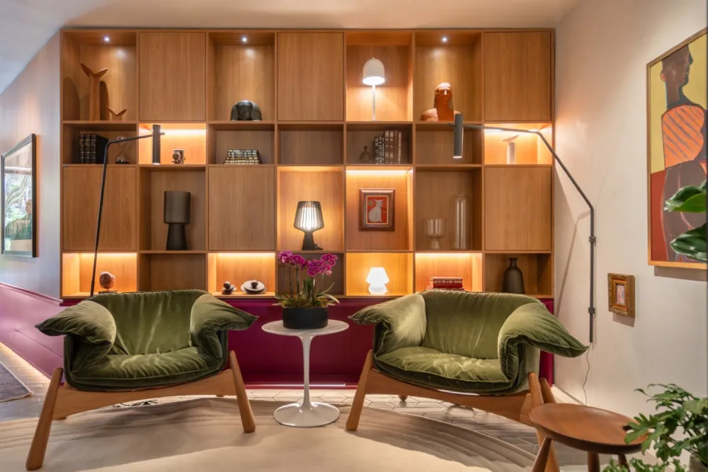 Aposte em ambientes que integrem elementos naturais e tecnologia inteligente, seguindo as tendências atuais de design sustentável e funcional.