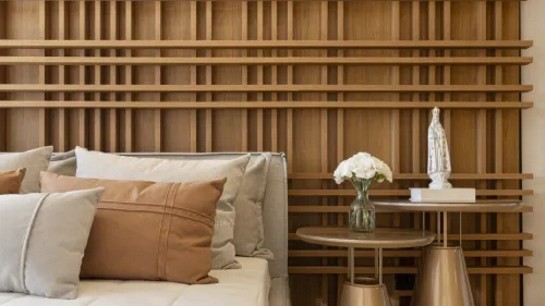 Além disso, é possível utilizar revestimentos especiais que se integram aos dispositivos eletrônicos, como espelhos com tela de TV embutida ou painéis de parede que escondem os cabos e fios.