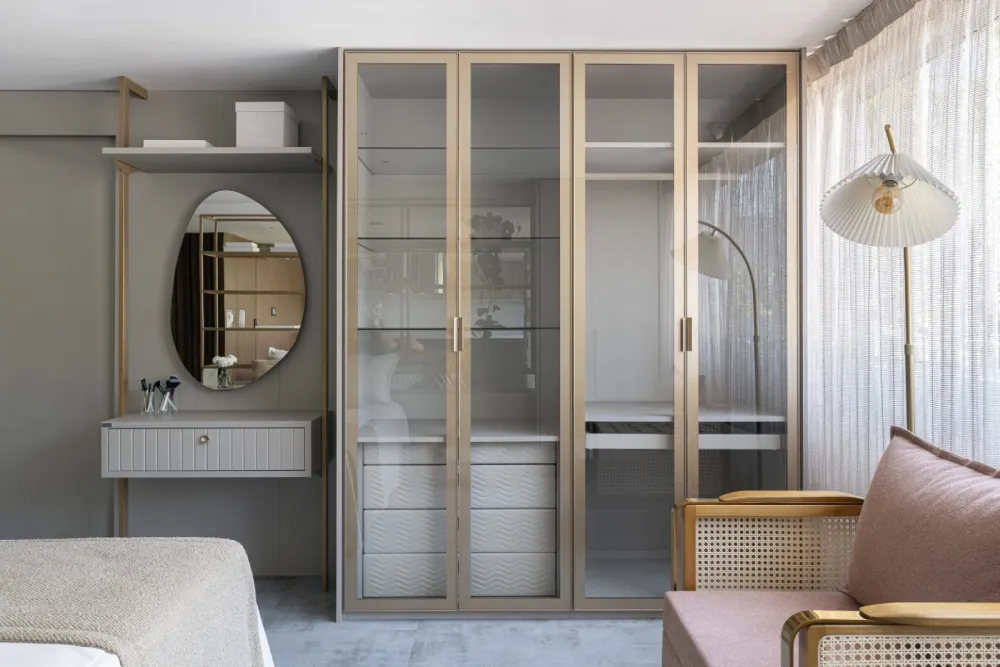 Ao escolher as cores e os materiais para um quarto de casal planejado, é importante considerar a harmonia entre os elementos. Optar por tons neutros e materiais como madeira e vidro pode criar um ambiente sofisticado e atemporal, que combina perfeitamente com a tecnologia incorporada.