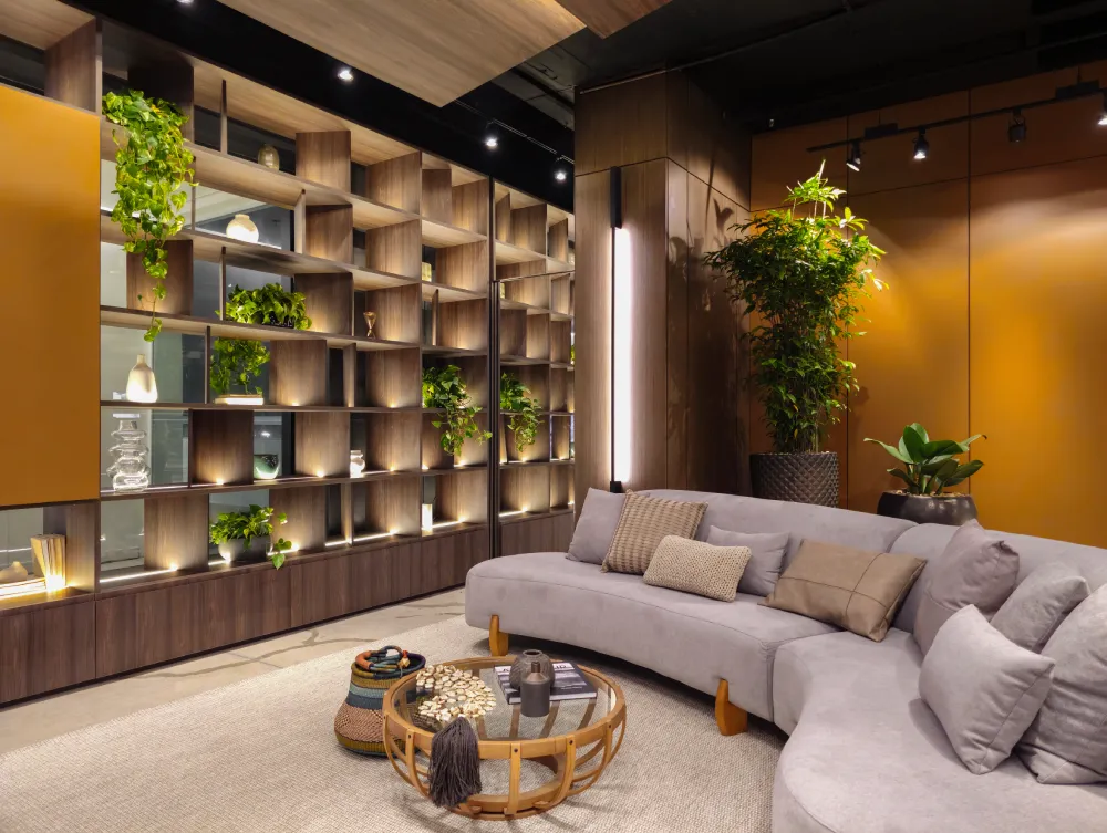 Incorporar vegetação no design de móveis planejados é uma das maiores tendências. Estantes com nichos para vasos ou prateleiras que abrigam plantas contribuem para a purificação do ar e criam um ambiente mais relaxante. Essas soluções são ideais para transformar espaços compactos sem abrir mão da funcionalidade.