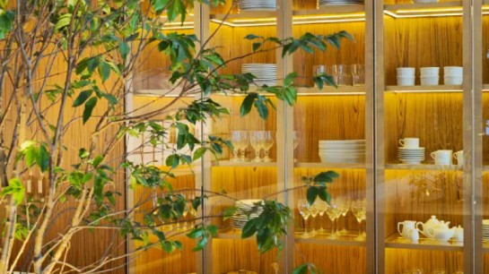 Integração de vegetação aos móveis: prateleiras e bancadas com espaços para plantas tornam os ambientes mais agradáveis e saudáveis.
