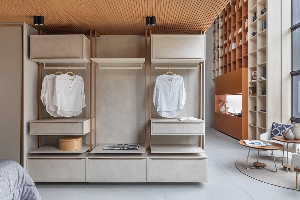 Espaços modulares: permitem reconfigurar o layout interno do armário conforme as necessidades mudam.